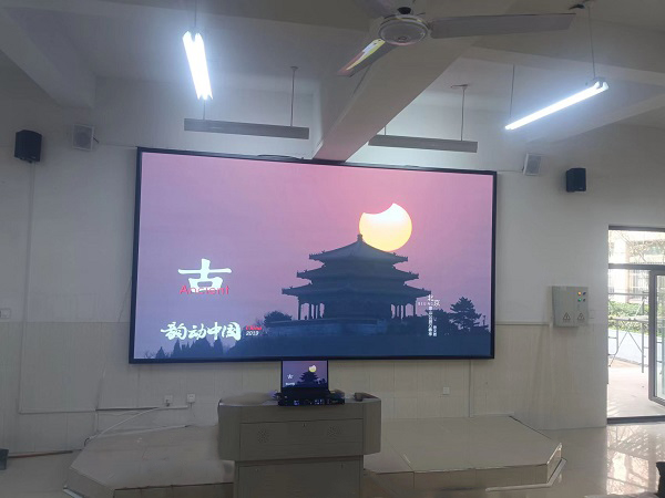 某中学室内P2全彩屏安装调试完毕